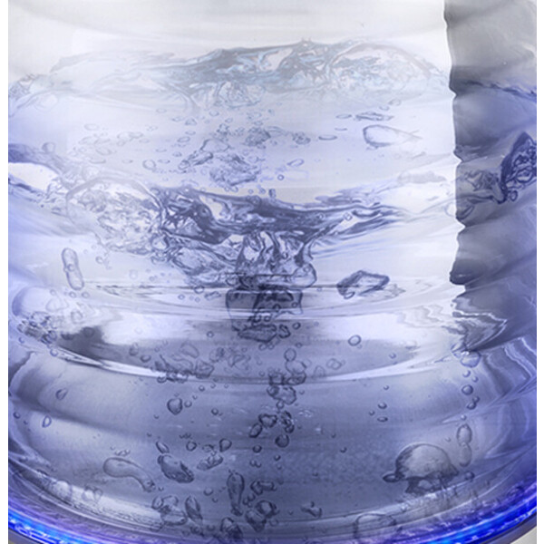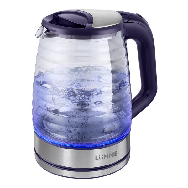 Легкий ударопрочный стеклянный чайник с голубой внутренней подсветкой в элегантном прозрачном корпусе из закаленного термостойкого стекла объемом 2 литра. Стекло сохраняет природный вкус и все натуральные свойства воды, а внутренний фильтр, закрывающий носик, служит для дополнительной фильтрации воды. Для скорейшего закипания чайник имеет повышенную до 1800 Вт мощность нагревательного элемента, закрытого плоским стальным дном для противостояния накипи, коррозии и удобства в уходе. Система автоматического отключения чайника при закипании или недостаточном количестве воды защитит чайник от преждевременного выхода из строя. Возможность ставить чайник на базу с любой стороны и вращать на 360 градусов, поворачивая ручкой к себе, исключает риск случайных ожогов и обеспечивает полный комфорт. Благодаря внутренней светодиодной голубой подсветке, чайник особенно хорошо смотрится в работе и дарит отличное настроение красотой бликов закипающей воды.