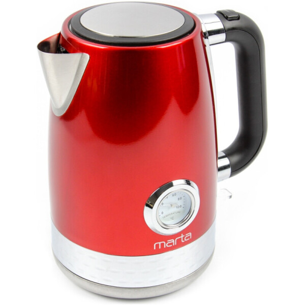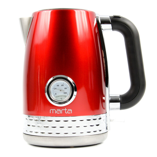 Вместительный металлический чайник объемом 1.8 литра из высококачественной нержавеющей стали. Пищевая нержавеющая сталь способствует сохранению природного вкуса и натуральных свойств воды. Для быстрого закипания чайник оснащен нагревательным элементом мощностью 2,2 к Ватт, защищенного плоским стальным дном для равномерности нагрева, противостояния накипи, коррозии и для большего удобства в уходе. Система автоматического отключения при закипании или недостаточном количестве воды заметно продлит срок работы чайника. Встроенный в чайник индикатор температуры позволяет контролировать текущую температуру воды. Чайник оснащен базой питания, позволяющей брать его с любой стороны или вращать на 360 градусов, что делает прибор совершенно безопасным, а его эксплуатацию комфортной.