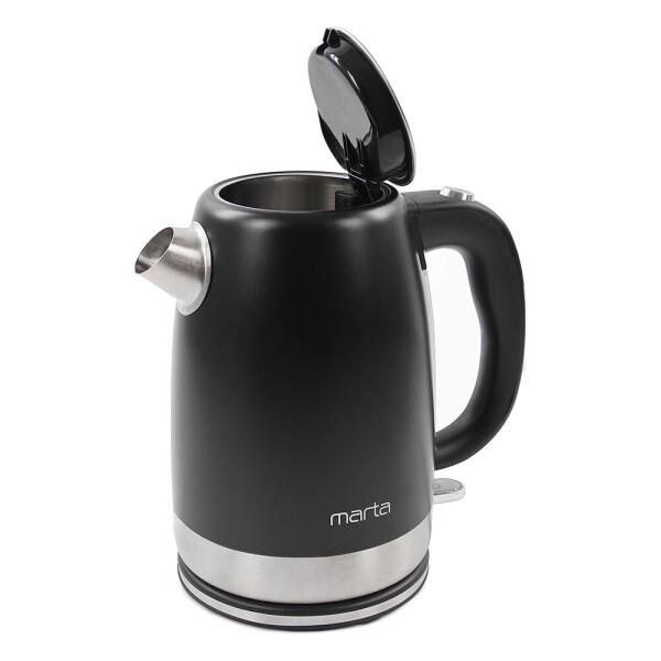 Чайник оснащен базой питания, позволяющей вращать его на 360 градусов и брать с любой стороны, что делает прибор более безопасным, а его эксплуатацию комфортной.