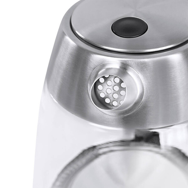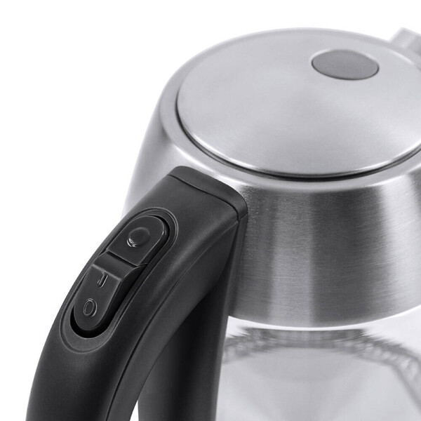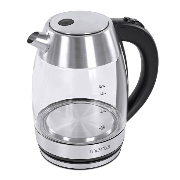 Современный, легкий и прочный чайник Marta MT-4562 в элегантном корпусе из закаленного термостойкого стекла с голубой внутренней подсветкой и закрытым стальным нагревательным элементом.