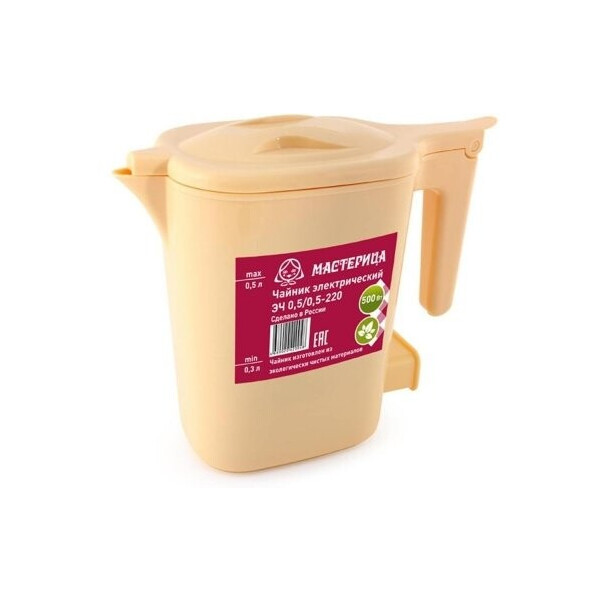 Устали брать в дорогу, командировку, путешествия неудобные кипятильники? Тогда вам наверняка понравится электрический чайник Мастерица ЭЧ 0,5/0,5-220, исполненный в теплом бежевом цвете. Он характеризуется мощностью 0,5кВт, что в сочетании с объемом 0,5л обеспечивает закипание воды менее чем за три минуты. В его основе ТЭН из первоклассной нержавейки. К преимуществам прибора следует отнести снимающийся шнур, малый вес, шкалу уровня воды.