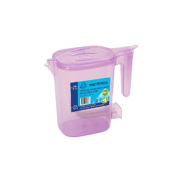 Электрический чайник Мастерица ЭЧ 0,5/0,5-220 изготовлен из пищевого пластика и не опасен для здоровья. Выполнено устройство в оригинальном сиреневом цвете, который сразу же привлечет внимание к себе. Нагревательный элемент - ТЭН, спираль из нержавеющей стали. Если вам нужно небольшое количество воды, то этот чайник именно то, что вам нужно.