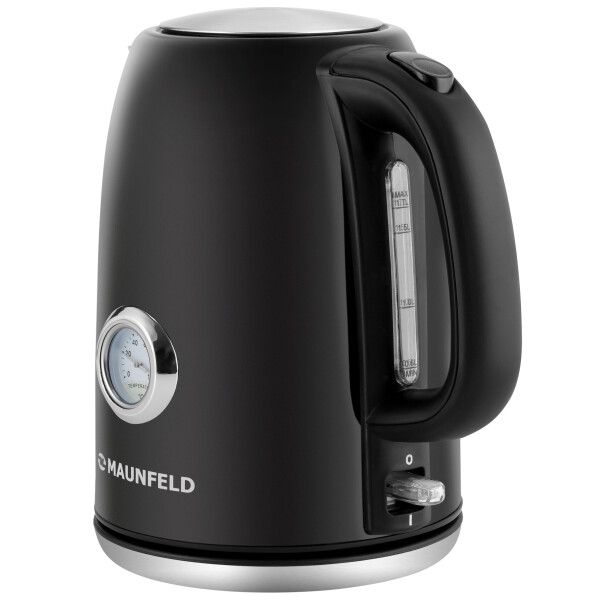 Чайник электрический Maunfeld MFK-624B выполнен в потрясающем дизайне и чёрном цвете. Максимальная мощность достигает 2200 вт, а объём 1.7 л. Он оснащен целым рядом функций, таких как: вращение чайника на 360, систему автоматического открывания крышки, съёмный фильтр, индикацию включения на переключателе (свет, индикатор уровня воды, автоматическое/ручное отключении: ри закипании, указатель температуры воды, при снятии чайника с базы, при небольшом количестве воды.