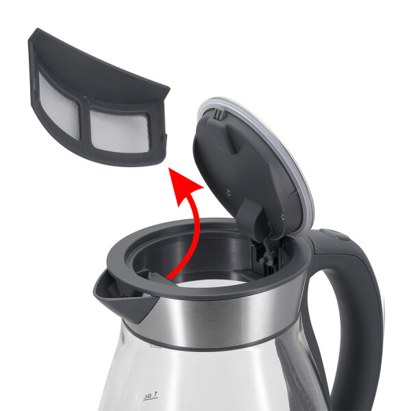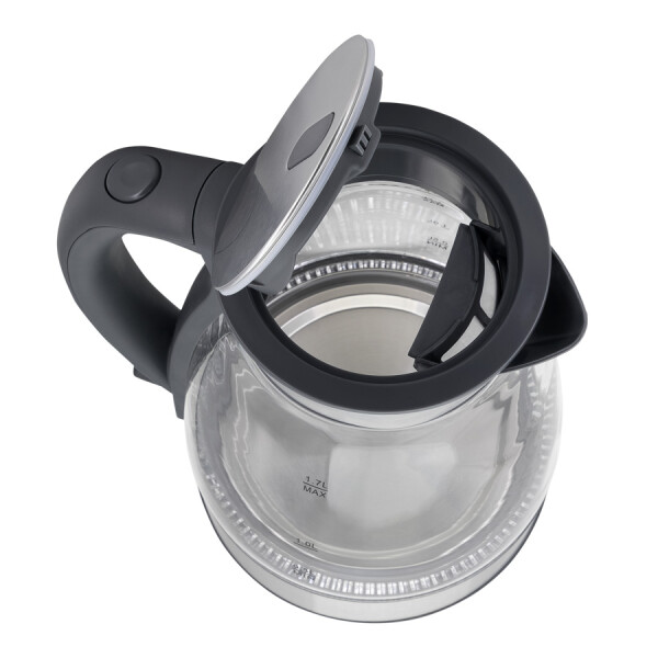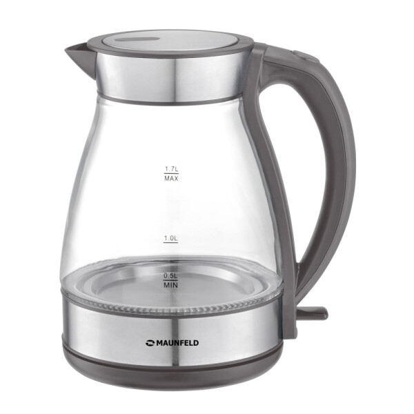 Электрический чайник выполнен из боросиликатного стекла повышенной прочности в комбинации с металлом.