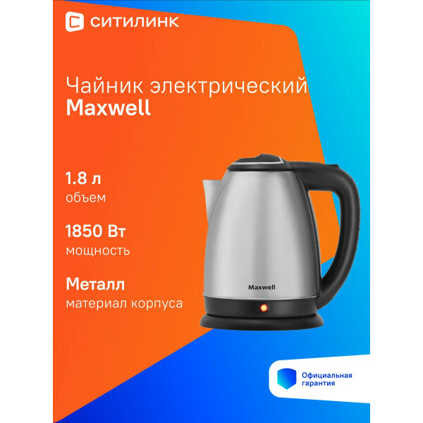 Электрический чайник Maxwell MW-1081(ST) прост в управлении и долговечен в использовании. Изготовлен из высококачественных материалов. Мощность 1850 Вт вскипятит 1,8 литра воды в считанные минуты. Беспроводное соединение позволяет вращать чайник на подставке на 360°. Для обеспечения безопасности при повседневном использовании предусмотрены функция автовыключения, а также защита от включения при отсутствии воды.
