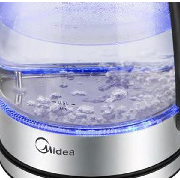 Чайник электрический Midea MK-8009 выполнен в стильном и прочном корпусе из закаленного стекла. В электрочайнике используется скрытый нагревательный элемент из нержавеющей стали, который благодаря мощности 2200 Вт позволяет закипятить 1.7 л воды за несколько минут. Реализована функция поддержания температуры. Для удобства в пользовании чайник оборудован шкалой уровня воды и подсветкой. Моющийся нейлоновый фильтр в носике защищает от попадания накипи. А многоуровневая система защиты с функцией автоотключения гарантирует безопасную эксплуатацию прибора.