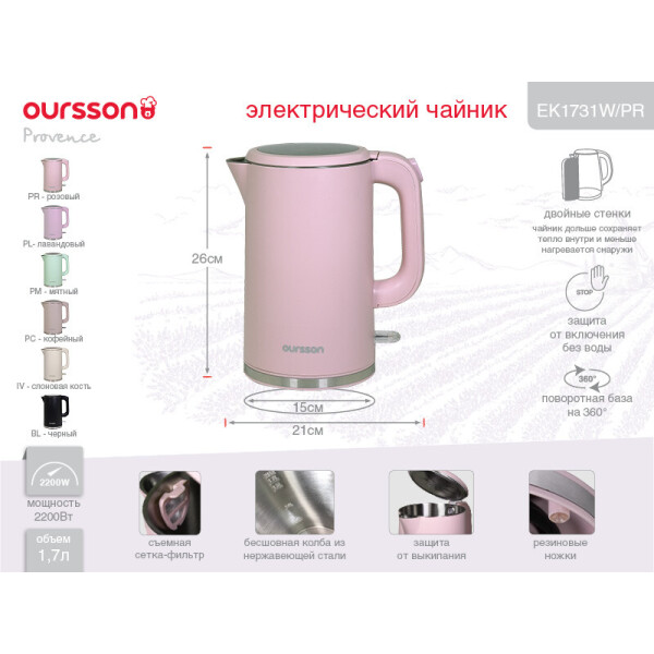 Электрический чайник EK1731W 1,7 л с двойными стенками, благодаря которым дольше сохраняет тепло внутри и меньше нагревается снаружи. Внутренняя часть изготовлена из высококачественной пищевой нержавеющей стали, включая крышку, внешняя из термостойкого пластика. Модель оснащена удобным фильтром, который не позволит накипи попасть в чашку. Благодаря отсутствию швов в металлической колбе чайник защищен от протеканий. Корпус чайника свободно вращается на 360 градусов, что гарантирует удобство в эксплуатации.