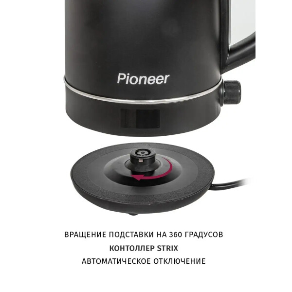 Чайник электрический Pioneer KE568M. Модель характеризуется емкостью 1.7 литра и снабжена съемным фильтром предотвращающим попадание частиц накипи в чашку.