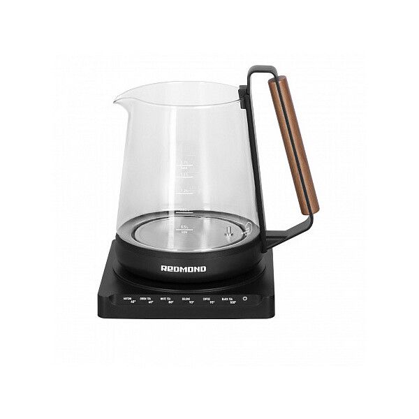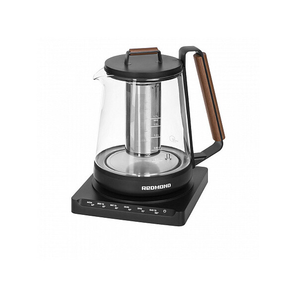 Стильный мультифункциональный чайник REDMOND RK-G1308D может кипятить воду, нагревать ее до нужной температуры и заваривать напитки прямо в колбе. Сочетание фактур матового черного пластика с изящными вставками под дерево на крышке и рукоятке идеально впишется в интерьер в стиле гранж, лофт, контемпорари и другие современные интерьеры.