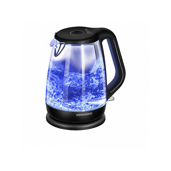 Красивый ,элегантный, стильный с прозрачной колбой и скрытым нагревательным элементом. Светодиодная полоса, расположенная по нижнему контуру стеклянной колбы, подсвечивает пузырьки воды, поднимающиеся внутри при закипании, и придает прибору изысканный вид. Боковины, крышка и ручка чайника выполнены из матового пластика.