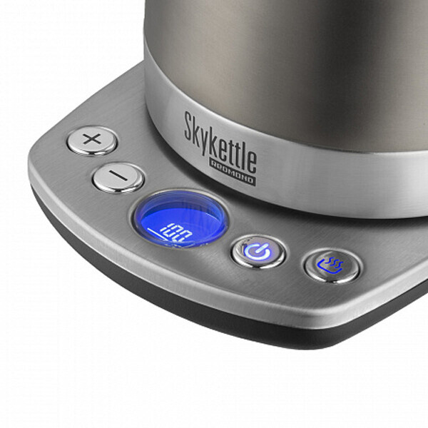 Через удобное мобильное приложение Ready For Sky с любого расстояния можно выбрать один из режимов работы чайника skykettle: кипячение, подогрев (до 2 часов), кипячение и подогрев; задать температуру подогрева в диапазоне от 40 до 90С; узнать текущую температуры воды в Skykettle.