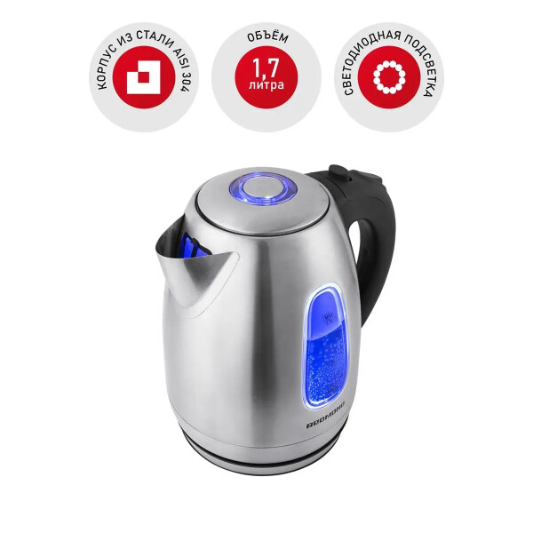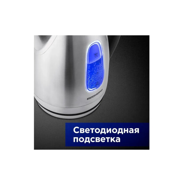 Электрический чайник REDMOND RK-М183 — новая вместительная модель с корпусом из нержавеющей стали и стильной внутренней подсветкой голубого цвета. Этот кухонный прибор способен легко обеспечить горячим чаем большую семью или компанию, а также удивить своим приятным сиянием в темноте.
