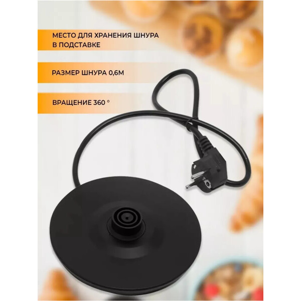 Изысканные и элегантные формы корпуса, высокое качество покрытия. Конструкция с отдельной подставкой. Чайник может свободно поворачиваться на подставке (на 360 градусов), что обеспечивает необычайную простоту использования.