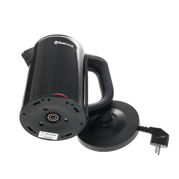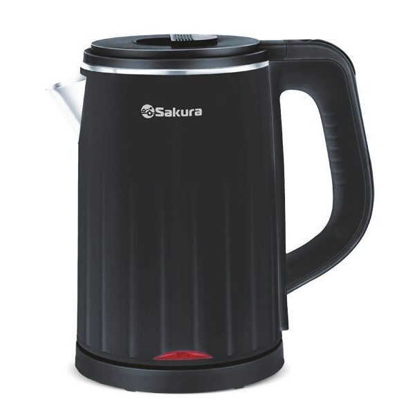 Чайник электрический Sakura SA-2155BK объемом 1.2 литра, с дисковым нагревательным элементом. Sakura SA-2155BK обладает двухслойным металлическим корпусом, благодаря этому создаются эффект термоса (быстрее нагревается и дольше удерживает тепло). Чайник отключается автоматически при закипании/без воды. Данная модель чайника имеет световой индикатор работы, шкалу уровня воды и вращается на 360.
