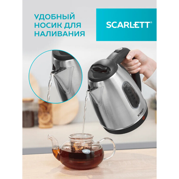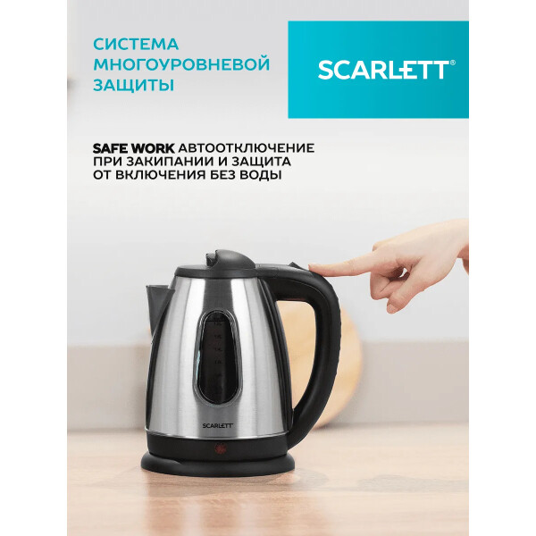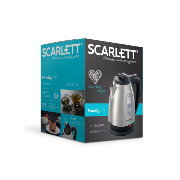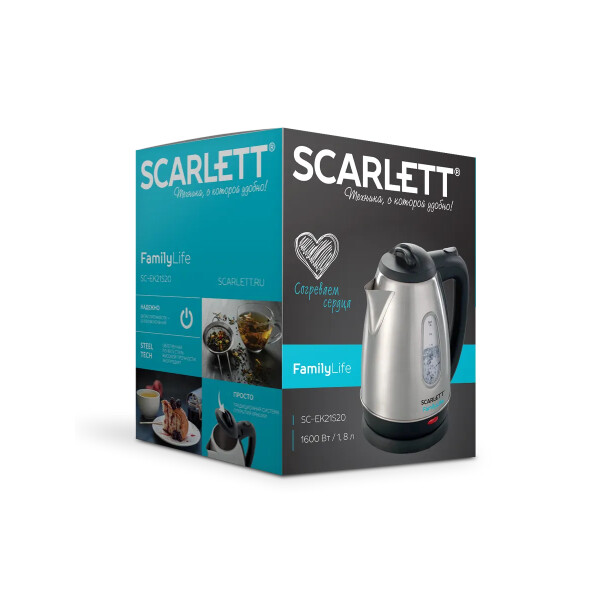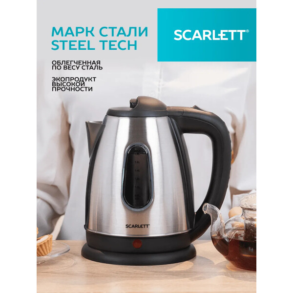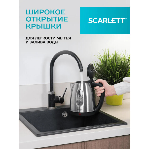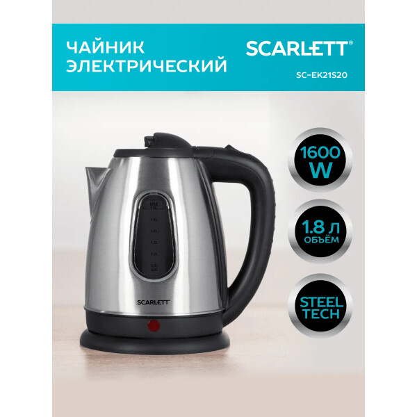Чайник SC-EK21S20 имеет увеличенный объем (1,8 литров), что наверняка придется по душе хозяину большой семьи. Благодаря стильному черно-стальному исполнению чайник легко впишется в интерьер офисной кухни или домашней кухни в стиле.