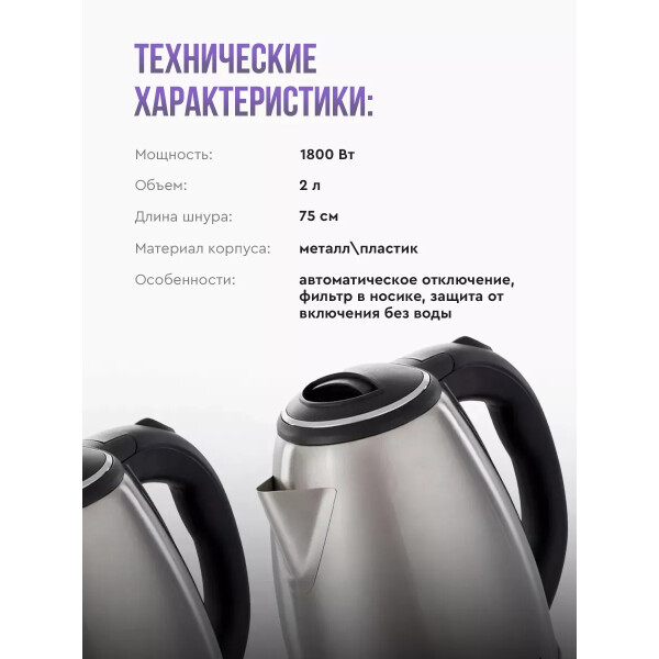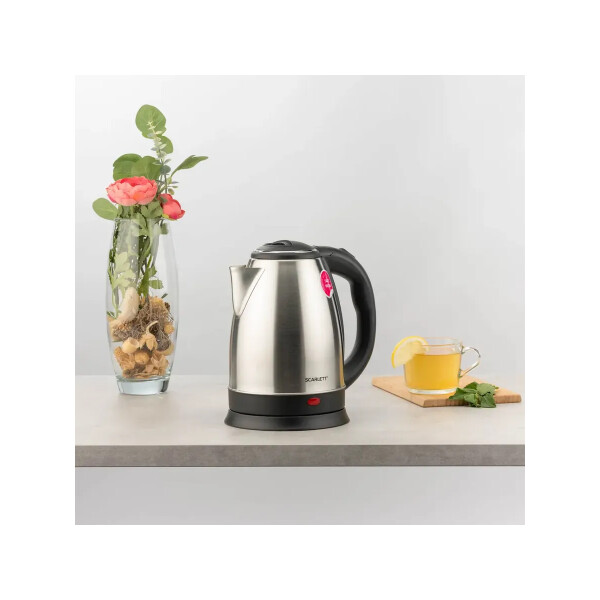Электрочайник Scarlett SC-EK21S26 представлен в элегантном дизайне и имеет черно-серебристую расцветку корпуса из нержавеющей стали. Работа осуществляется с мощностью 1800 Вт, а вместимость чайника составляет 1.8 л. Предусматривается наличие фильтра в носике и скрытого нагревательного элемента, произведенных из нержавеющей стали.