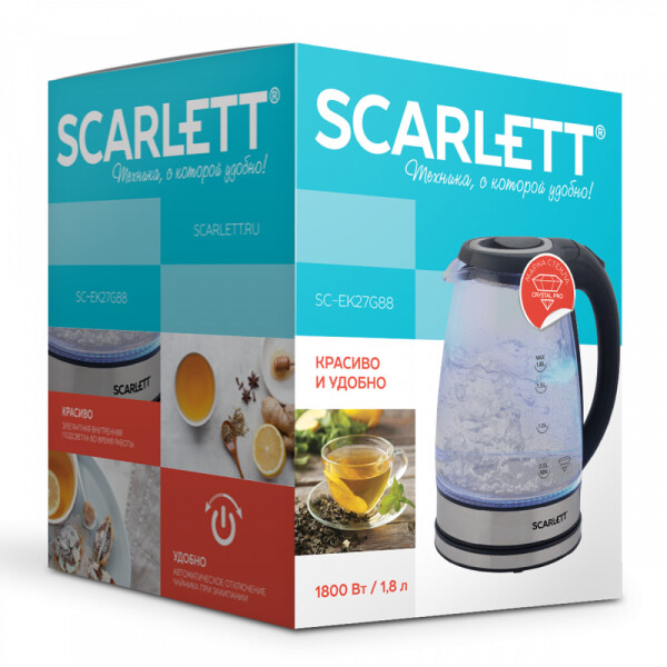 Эргономичная ручка, закрытый нагревательный элемент сделают эксплуатацию прибора еще проще и комфортнее. Внутренняя подсветка позволит наблюдать за завораживающим процессом кипячения.