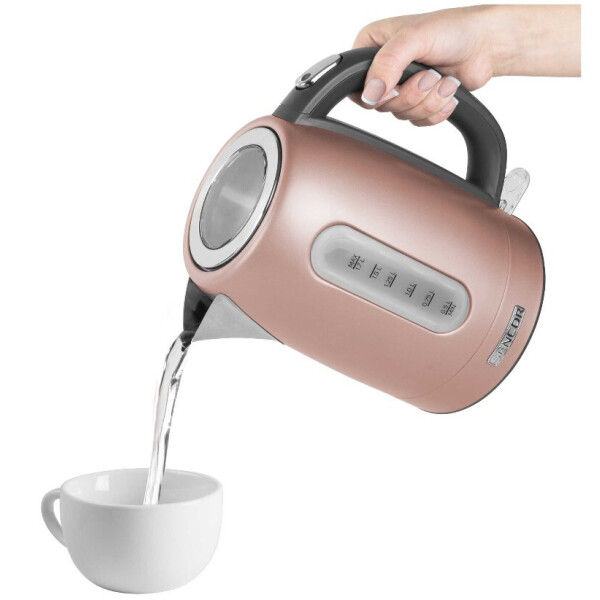 Чайник электрический Sencor SWK 1775RS имеет указатель уровня воды, съемный фильтр для отделения загрязнений и осадка. Закрытый нагревательный элемент. Защита от перегрева при включении без воды.