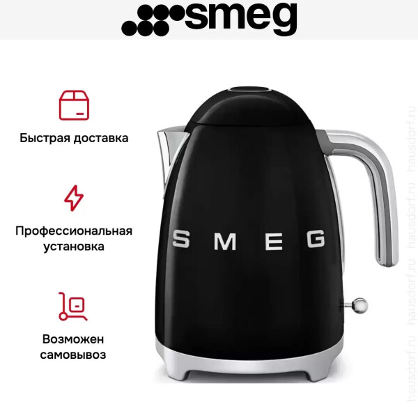 Электрический чайник Smeg KLF03BLEU в стиле 50-х годов выполнен из нержавеющей стали в благородном черном цвете. Конструкция прибора вмещает до 1.7 литров воды, предусматривает мягкое открытие крышки и отделение для хранения шнура в базе. Модель автоматически отключается при достижении температуры в 100С, а также при снятии с базы, что обеспечивает максимальный комфорт использования. Съемный фильтр из нержавеющей стали легко снимается для очистки.