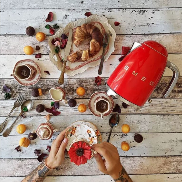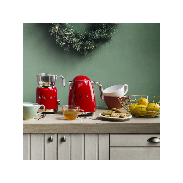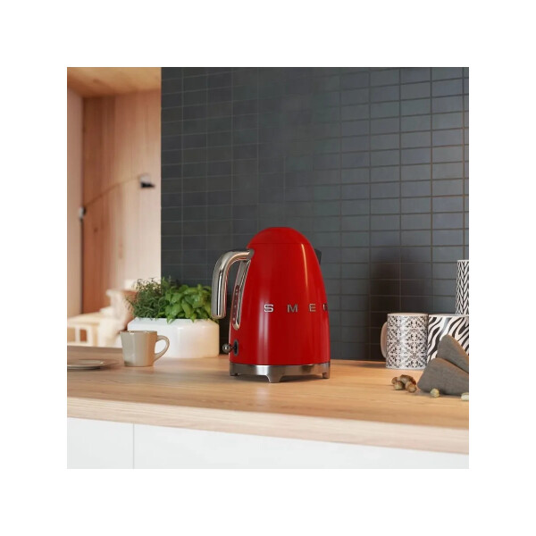 Электрический чайник Smeg KLF03RDEU дизайна 50-х выполнен из нержавеющей стали красного цвета. Модель имеет стандартную емкость в 1.7 литров и поворотную базу 360°. Съемный фильтр из нержавеющей стали легко демонтируется для очистки. Автоматическое отключение прибора осуществляется при снятии с базы, а также при достижении температуры в 100°С. Эргономичная конструкция прибора предусматривает мягкое открывание крышки, нескользящие ножки для надежной устойчивости и специальное отделение для хранения шнура в базе.