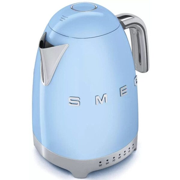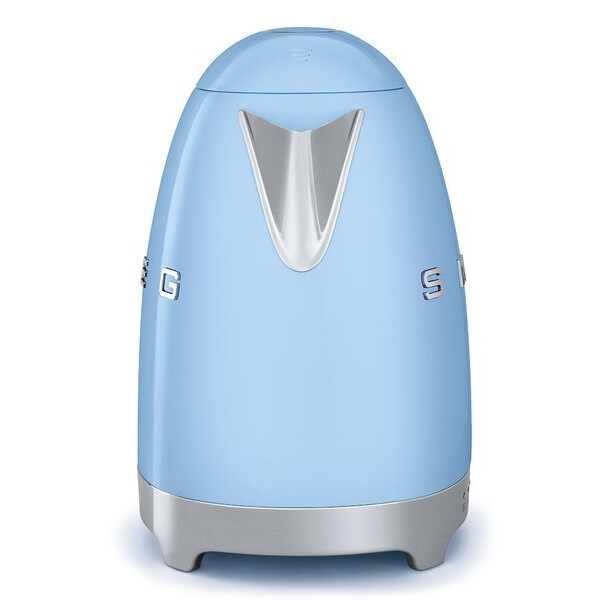Электрический чайник Smeg KLF04PBEU с возможностью регулировки температуры в диапазоне от 50 до 100С. Модель в пастельно-голубом цвете органично впишется в современный интерьер с прочими приборами серии стиль 50-х годов. Устройство автоматически отключается в момент достижения заданной температуры, а также при снятии с базы и во время отсутствия воды в чайнике.