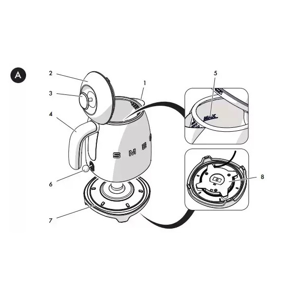 Чайник электрический Smeg KLF05BLEU из коллекции Стиль 50-х годов выполнен в черном цвете. Внутренний корпус прибора изготовлен из нержавеющей стали и отличается долговечностью. Нескользящие ножки обеспечивают устойчивое положение устройства. Модель предусматривает в себе защиту от включения без воды, что гарантирует безопасность эксплуатации.