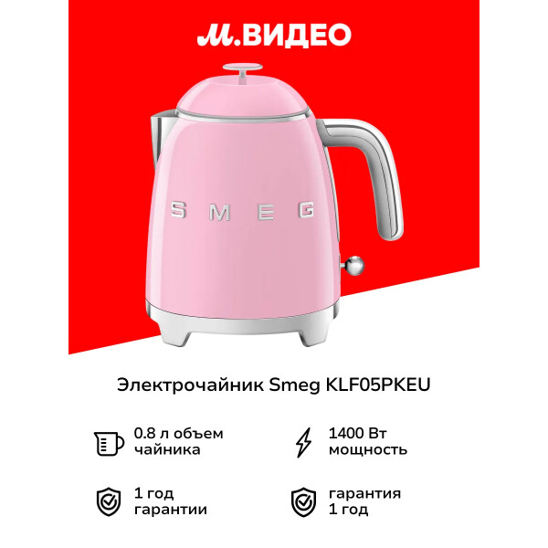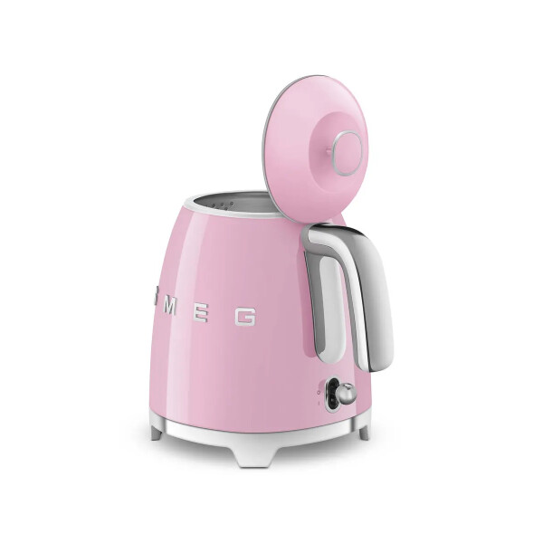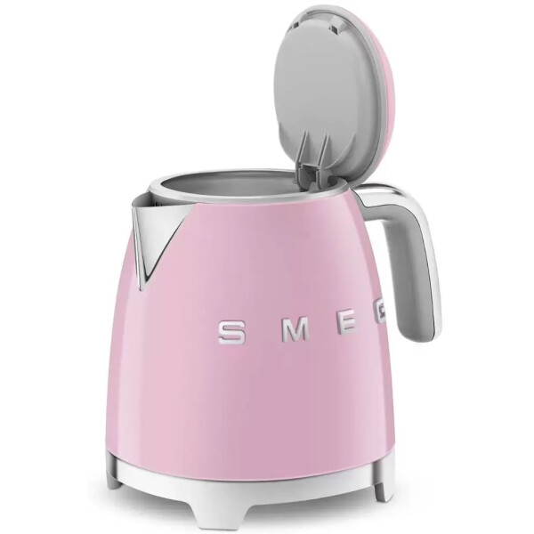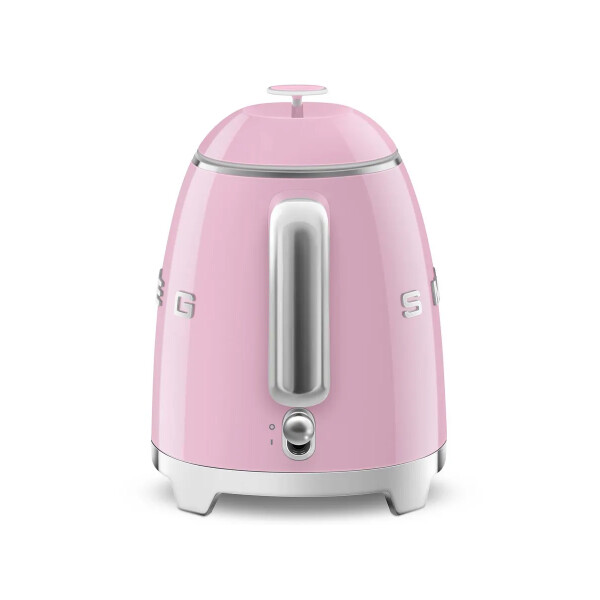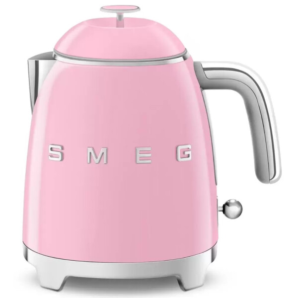 Smeg KLF05PKEU - розовый глянцевый чайник в стиле 50-х г.г. Основание и ручки - хромированные. Тип управления - рычаг из нержавеющей стали.