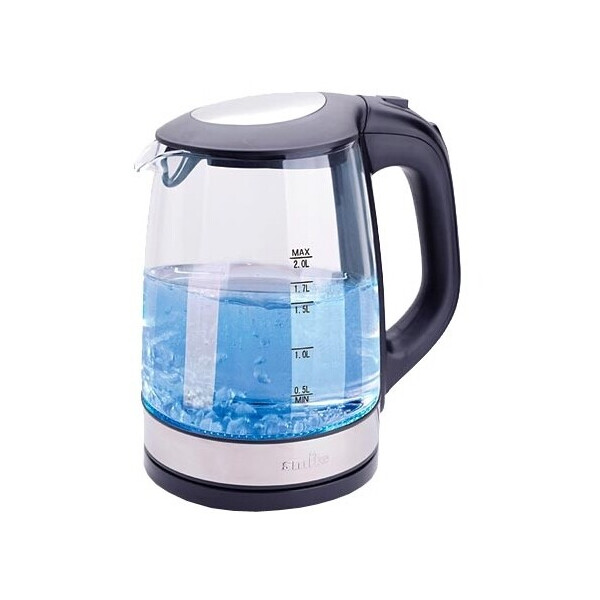 SMILE WK 5412 в стильном корпусе изготовлен из термостойкого стекла с эффектной внутренней подсветкой создаст особую атмосферу и подчеркнет индивидуальность вашей кухни. Мощный нагревательный элемент позволяет вскипятить 2 литра воды за считанные минуты. Съемный моющийся фильтр предотвращает попадание мелких частиц накипи в чашку, благодаря чему вода всегда будет чистой и приятной на вкус. Функция автоматического отключения при закипании или недостаточном количестве воды обеспечивает безопасное использование прибора и экономию электроэнергии.