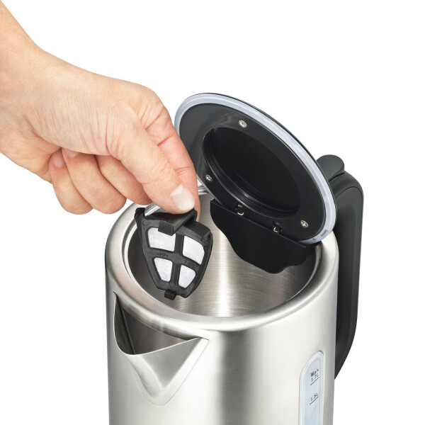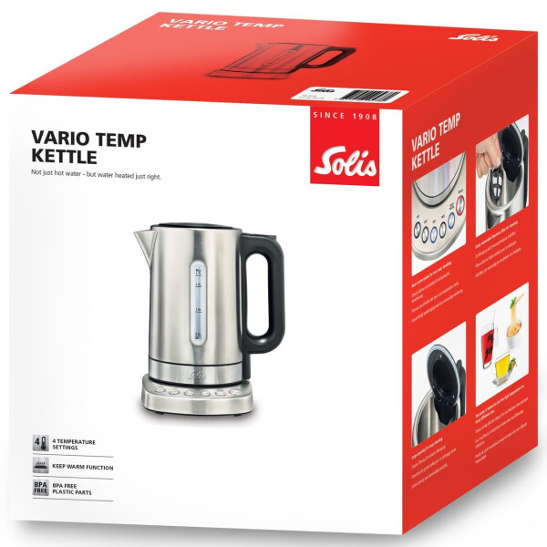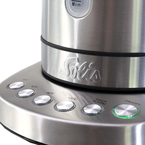 Электрический чайник Solis 5516 кипятит воду, а также нагревает её до заданной температуры. СОВРЕМЕННЫЕ ТЕХНОЛОГИИ Устройство оснащено кнопочной панелью. Выберите подходящий вариант 70, 80, 90 или 100, и нажмите клавишу. Также предусмотрена функция поддержания тепла в течение 2 часов. НАДЁЖНЫЙ И УДОБНЫЙ Корпус сделан из прочной и практичной нержавеющей стали. Он дополнен эргономичной ручкой и широким носиком, в котором есть съёмный фильтр, не позволяющий накипи попадать в чашки.