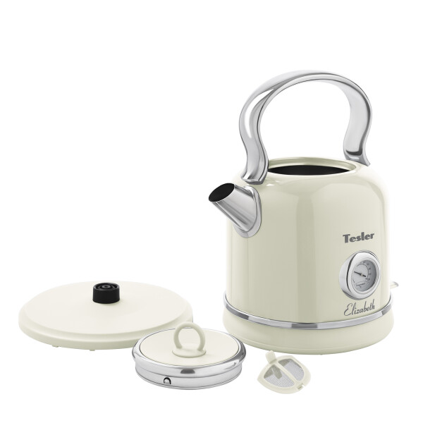 Оригинальный электрический чайник Tesler Elizabeth KT-1745 бежевого цвета является функциональным и изящным.