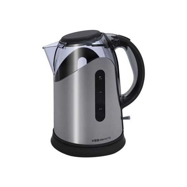 VES 1007 - стильный и элегантный чайник для вашего дома. Он изготовлен из металла и пластика. Для удобства пользования чайник оснащен индикатором уровня воды, а также отсеком для шнура.