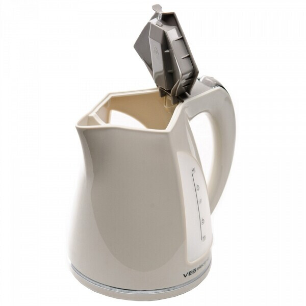 Электрочайник VES 1015 имеет кнопку для открытия крышки, индикатор работы и удобную подставку с возможностью вращения на 360 градусов.
