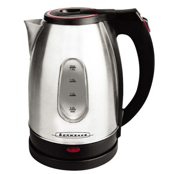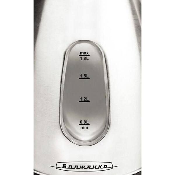 Электрочайник ВОЛЖАНКА ЭЧ-009 готов похвастаться элегантным дизайном, высокой мощностью и оптимальным объемом, равным 1.8 л. С этим устройством подготовка к любому чаепитию займет минимум времени, поскольку на кипячение воды у него уйдет несколько минут. Для изготовления корпуса данной модели использовалась высокопрочная нержавеющая сталь, которая препятствует быстрому остыванию воды после кипячения. Благодаря тому, что нагревательный элемент скрыт на дне чайника под металлической пластиной, вы сможете отмыть его от накипи и прочих загрязнений изнутри.