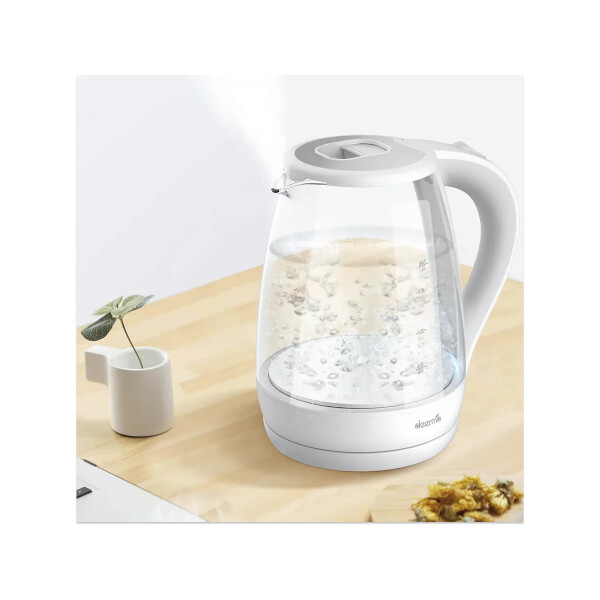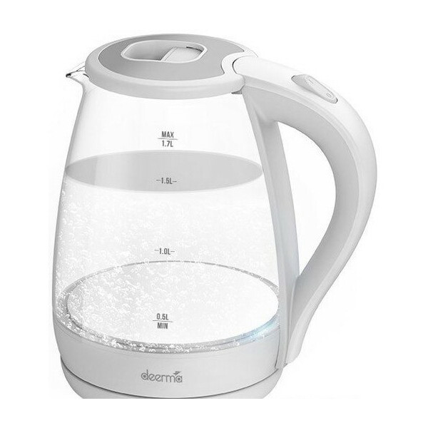 Электрочайник Deerma DEM-SH30W обладает эргономичным дизайном и удобным объемом в 1.7 литра. Его колба выполнена из качественного и прочного стекла, которое не боится перепадов температуры. Подключаемая к электросети база соединяется с чайником посредством специального коннектора, она выполнена из нержавеющая стали марки 304. Крышка модели свободно открывается на 110 градусов, позволяя быстро и без проблем наполнять чайник водой.
