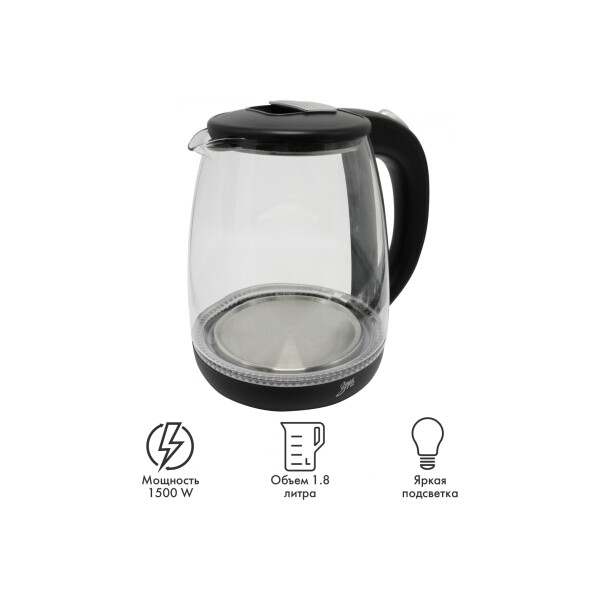 Электрический стеклянный чайник Заря 258-04 предназначен для дома или офиса.