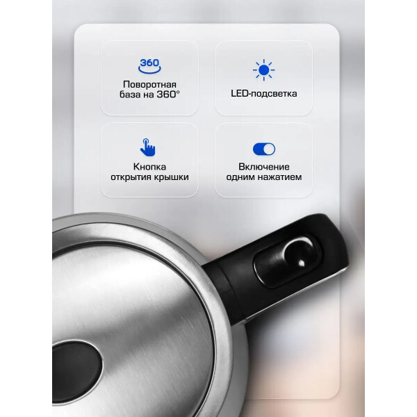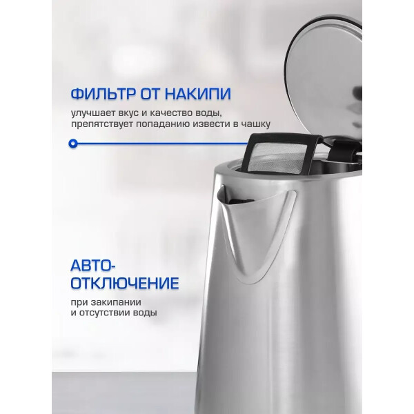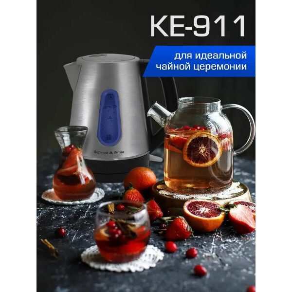Представляем вашему вниманию новый электрический чайник Zigmund & Shtain KE-911. Стильный современный чайник станет украшением Вашей кухни. Наслаждайтесь удобством и надежностью его эксплуатации! У чайника KE-911 высокое качество и надежность: основание корпуса из пищевой н/ж стали SUS 304 (0%BPA): высокие антикоррозийные свойства, не изменяет вкус и цвет воды. Кнопка открывания на ручке, съемный фильтр для защиты от накипи. Максимальная мощность: 2000 Вт. Объем: 1,8 литра. Корпус чайника нержавеющая сталь SUS304, двухстороння шкала уровня воды с LED подсветкой. Удобный отсек для хранения шнура.