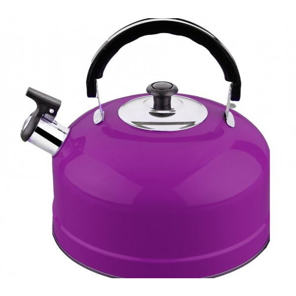 Чайник из нержавеющей стали со свистком, объем 2,5 л. Изготовлен из высококачественной нержавеющей стали, однослойное дно. Подвижная ручка из термостойкого пластика.