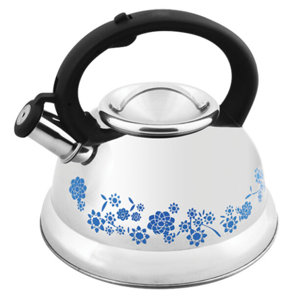 Оригинальный чайник для газовых и электрических плит. Благодаря свистку Вы всегда услышите, что чайник закипел. Объем 3 литра. Материал - нержавеющая сталь, толщина - 0,4 мм. Полированный, внутри - матовый. Рисунок на чайнике меняет цвет при нагревании с синего на красный. Капсулированное 3-х слойное дно (0,5 мм алюминий + 1,5 мм железо + 0,5 мм алюминий - подходит для индукции). Стальная крышка. Ручка - нейлон. Упаковка - индивидуальная цветная коробка.