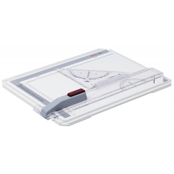 Чертежная доска Profil выполнена из прочного гладкого пластика и снабжена магнитной линейкой-фиксатором чертежа и дополнительным зажимом для фиксации листа. Рейсшина изготовлена по принципу «L-дизайна», что позволяет чертить поверх шины в нижней части листа, не переворачивая рейсшину. Также, чертежная доска имеет системуфиксации «Stop-and-Go».