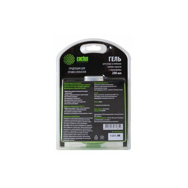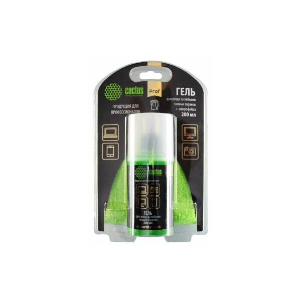 • Набор: гель для ухода за любыми типами экранов с микрофиброй Cactus Professional