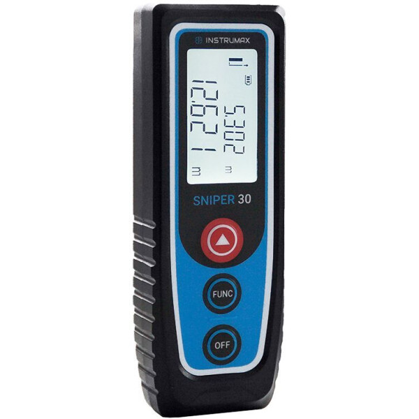 Лазерная рулетка Instrumax SNIPER 30 IM0115 помогает измерять расстояния до 30 м. Управление происходит с помощью всего 3 кнопок. Корпус соответствует стандарту IP54 и защищает рабочие узлы от пыли и влаги. При бездействии прибор автоматически отключается через 180 секунд, что позволяет экономить заряд батареи. Срока их службы хватает на более 5000 измерений. Модель имеет 2 точки начала отсчета - передняя и задняя часть прибора.
