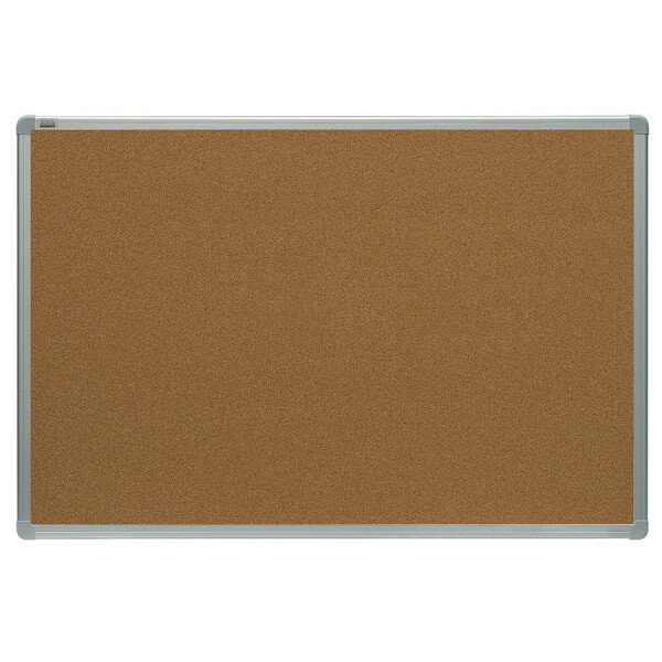 Поверхность доски из натуральной мелкозернистой пробки. Возможность прикрепления информации с помощью кнопок-гвоздиков и булавок. Рамка из анодированного алюминия с пластмассовыми уголками. Скрытое крепление к стене в четырех углах.