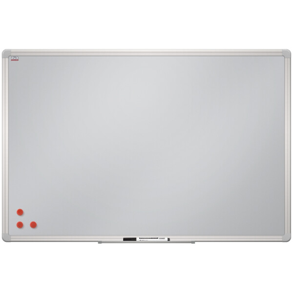 Доска магнитно-маркерная с серебряным лаковым покрытием в алюминиевой рамке. В комплекте идёт полочка, один маркер, три магнита и комплект креплений.