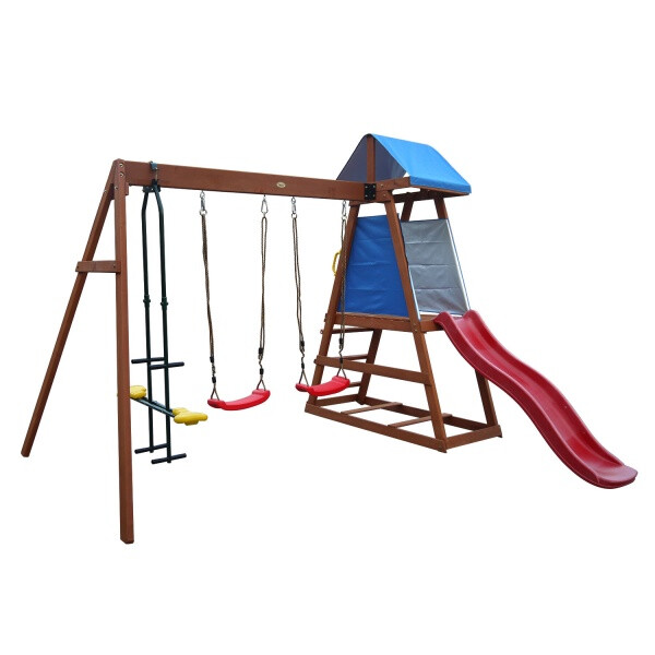 Горка с волной снабжена боковыми бортиками, обеспечивающими безопасность малышей. Дополнительными элементами для развлечений служат различные качели: двойные и одиночные.