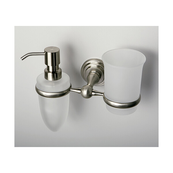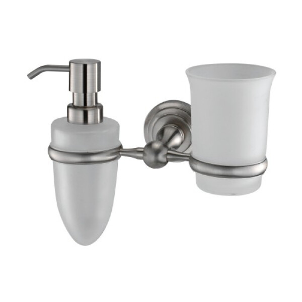 Держатель дозатора жидкого мыла и стакана из матового стекла.