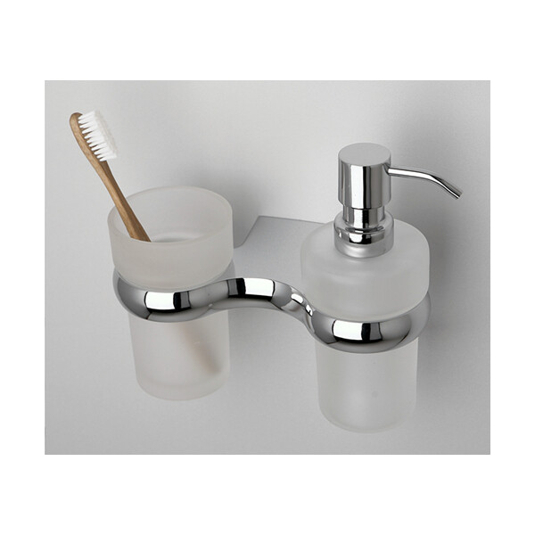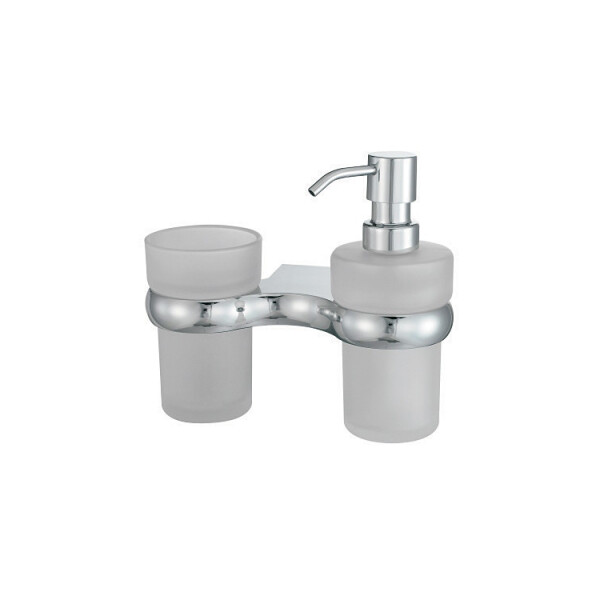 Держатель дозатора жидкого мыла и стакана из матового стекла.