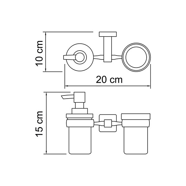 Держатель дозатора для жидкого мыла и стакана из матового стекла.