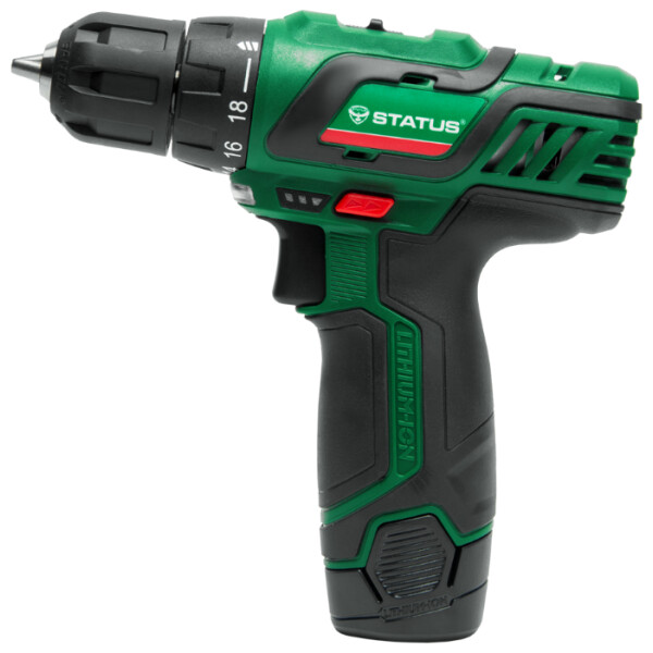 Аккумуляторная дрель-шуруповерт STATUS CT12-2Li - 10,8V (пиковое 12V), 1,5 Ач, 0-400/0-1400 об/мин, крутящий момент 28/16Нм, одномуфтовый быстрозажимной патрон 10мм, подсветка рабочей зоны, реверс, 18 поз.настройки момента, время зарядки - 1час. В комплекте: пластиковый чемодан, 2 аккумулятора Li-Ion, зарядное устройство, набор бит и сверел.