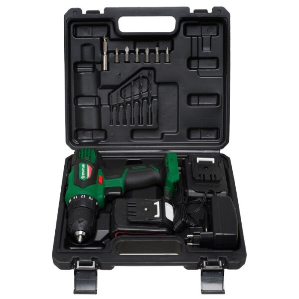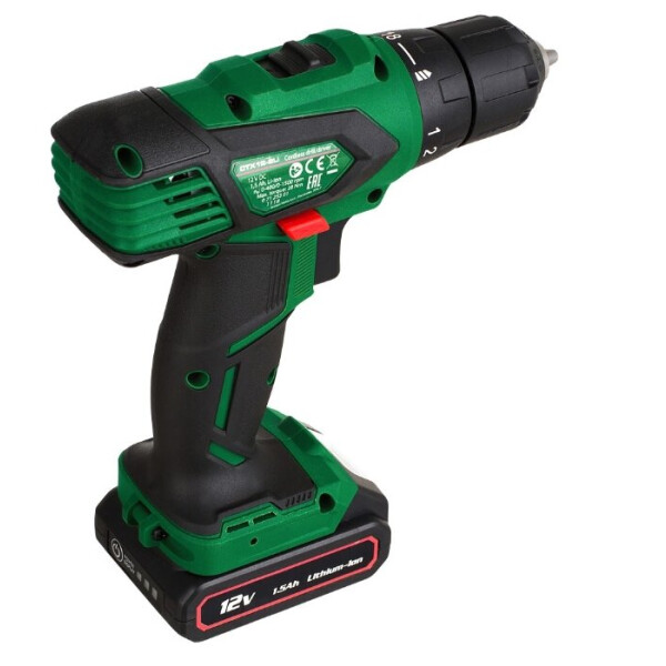 Аккумуляторная дрель-шуруповерт STATUS CTX12-2Li - 12V , 1,5 Ач, 0-400/0-1500 об/мин, крутящий момент 28/18 Нм, аккумулятор-слайдер с индикацией заряда, одномуфтовый быстрозажимной патрон 10мм, обрезиненная рукоятка, электронный тормоз, подсветка рабочей зоны из нижней точки, реверс, 18+1 поз.настройки момента, время зарядки - 1час. В комплекте: пластмассовый чемодан, 2 аккумулятора Li-Ion 1.5 Ач, зарядное устройство, комплект бит и сверел.