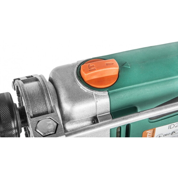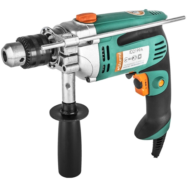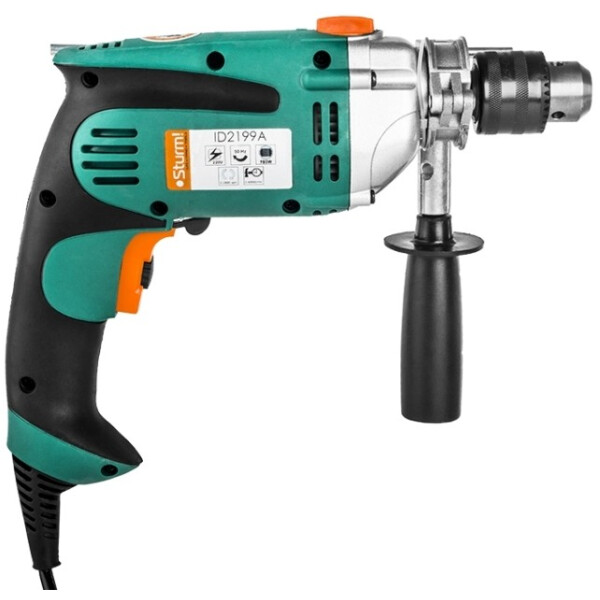 Ударная дрель Sturm ID2199A имеет металлический корпус редуктора, что увеличивает её рабочий ресурс. Оснастка надежно крепится в металлическом ключевом патроне. Переключение между режимами осуществляется с помощью специального переключателя, расположенного на верхней части корпуса инструмента. Ограничитель глубины позволяет сверлить отверстия заданного размера. Две рукоятки обеспечивают надежное удержание дрели во время работы. |